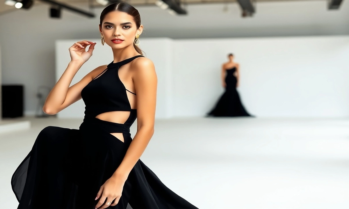 • Formal wear reaches peak sophistication in this elegant black attire.
